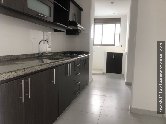 Apartamento con area de 90 mts, cuenta con 3 habitaciones, habitación principal con baño y vestier, 2 baños social completo, salón comedor, balcón, cocina integral tipo america, zona de ropas, parqueadero, buena iluminación.